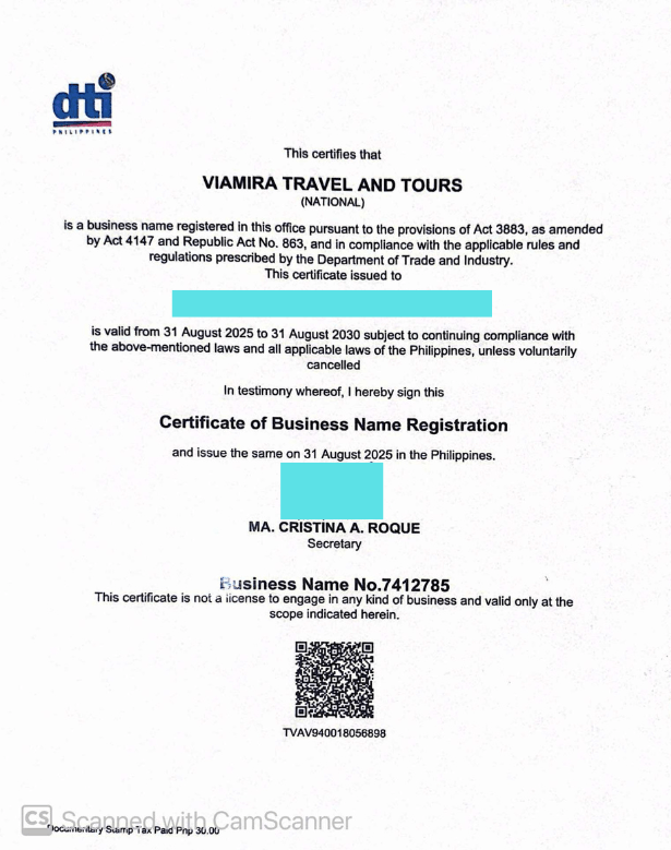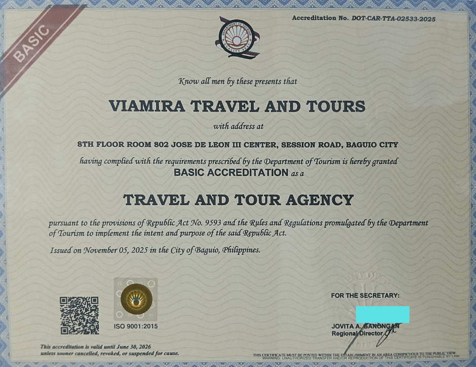 VIAMIRA TRAVEL AND TOURS, a Department of Tourism (DOT) accredited travel and tour agency dedicated to delivering seamless, memorable, and meaningful travel experiences. Our accreditation reflects our commitment to quality, professionalism, and service excellence giving our clients the confidence that they are traveling with a trusted and reliable industry partner.